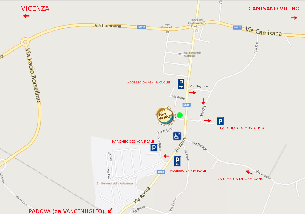 – uno presso il Municipio, in Piazza Norma Cossetto, raggiungibile da Camisano/Torri per via Roma imboccando via Magnolie e poi a destra su via Ole;